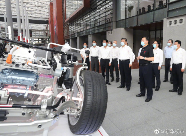 وزار شي مجتمعا سكنيا، ومدرسة لتدريب كوادر المجتمع، ومرفقا لمعرض التخطيط الحضري، ومركز البحث والتطوير الخاص بمجموعة (فاو) لصناعة السيارات.