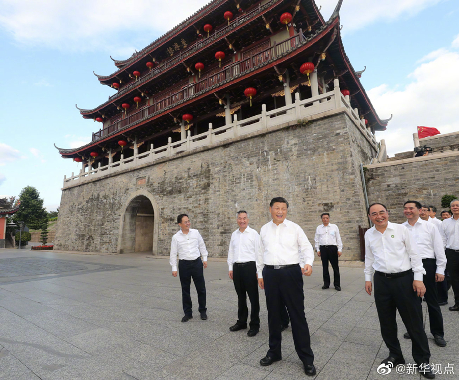 وفي مدينة تشاوتشو، زار شي معالم ثقافية وتاريخية، بما في ذلك جسر قديم وبرج مراقبة قديم وشارع تصطف على جانبيه مداخل تذكارية قديمة، للتحقق من ترميم وحماية الآثار الثقافية، وإرث التراث الثقافي غير المادي وتنمية الموارد الثقافية والسياحية.