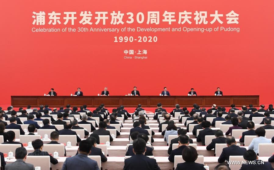 حضر الرئيس الصيني شي جين بينغ (الخميس) تجمعا كبيرا للاحتفال بالذكرى الـ30 لتنمية بودونغ في شانغهاي وانفتاحها.