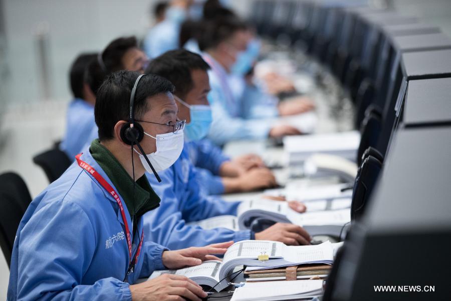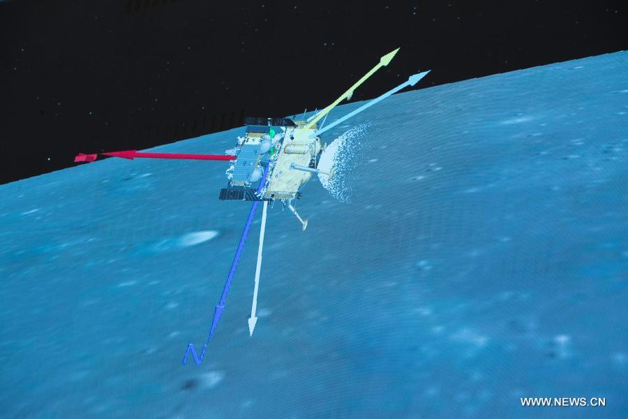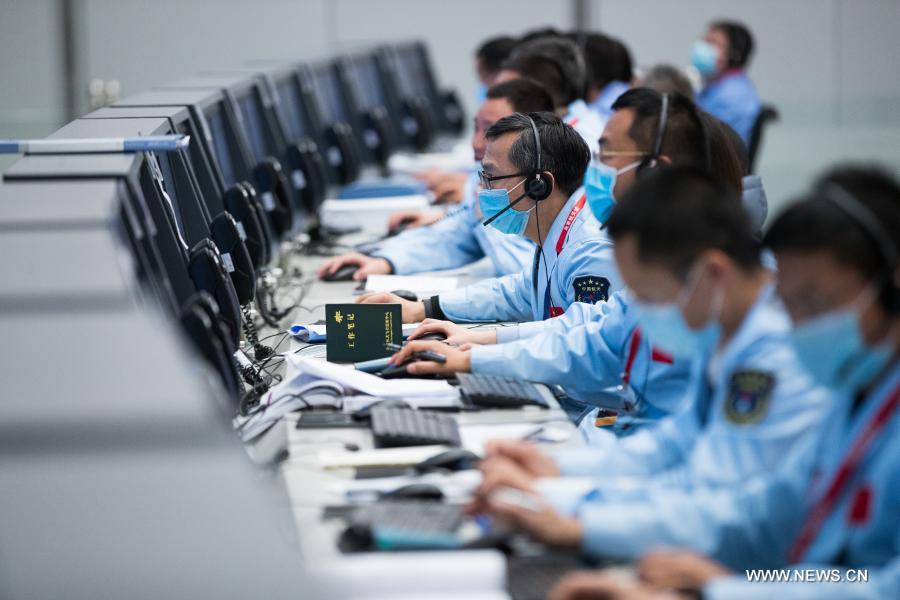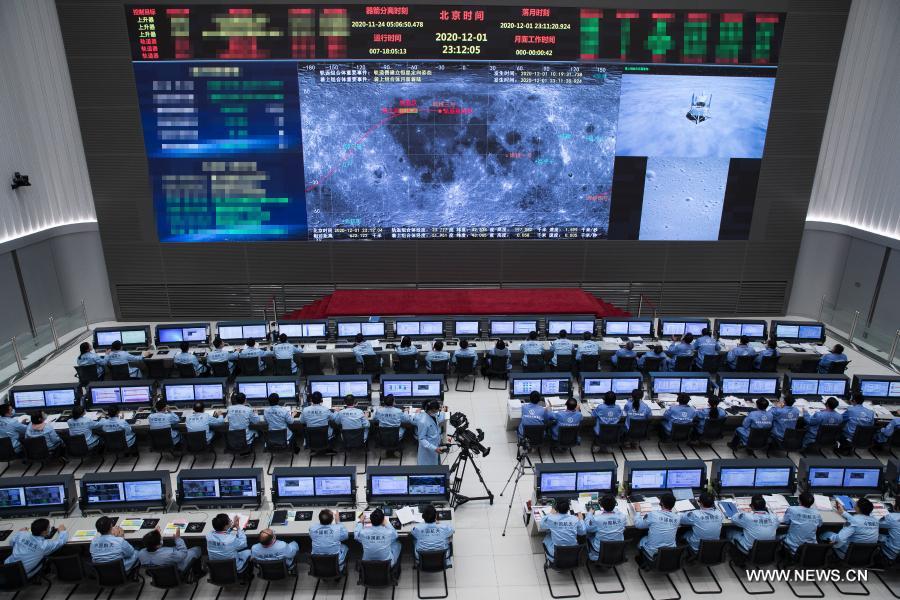 في الصورة الملتقطة في مركز بكين لمراقبة الفضاء في أول ديسمبر 2020، مشهد لعملية هبوط المركبة الفضائية (تشانغ آه-5). أعلنت إدارة الفضاء الوطنية الصينية أن المركبة الفضائية الصينية “تشانغ آه-5” هبطت بنجاح على الجانب القريب من القمر في وقت متأخر من اليوم (الثلاثاء) وأرسلت صورا. في الساعة 11:11 مساء، هبطت المركبة الفضائية في منطقة الهبوط المحددة مسبقا بالقرب من خط طول 51.8 درجة غربا ودائرة عرض 43.1 درجة شمالا.