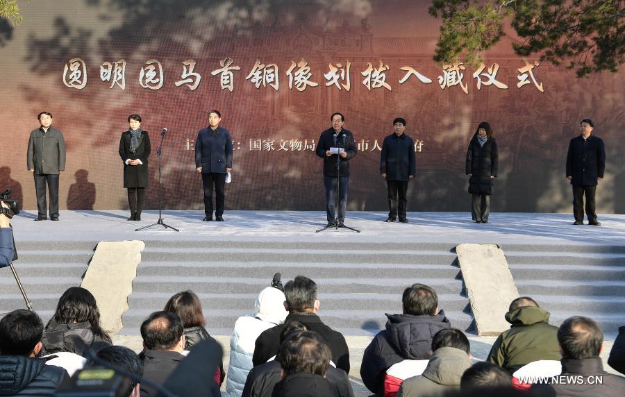 عاد تمثال رأس حصان برونزي، وهو أحد كنوز القصر الصيفي القديم الصيني، بعد أن اختفى على إثر النهب الذي قامت به قوات التحالف البريطانية-الفرنسية قبل 160 عاما، عاد إلى موقعه الأصلي يوم الثلاثاء.