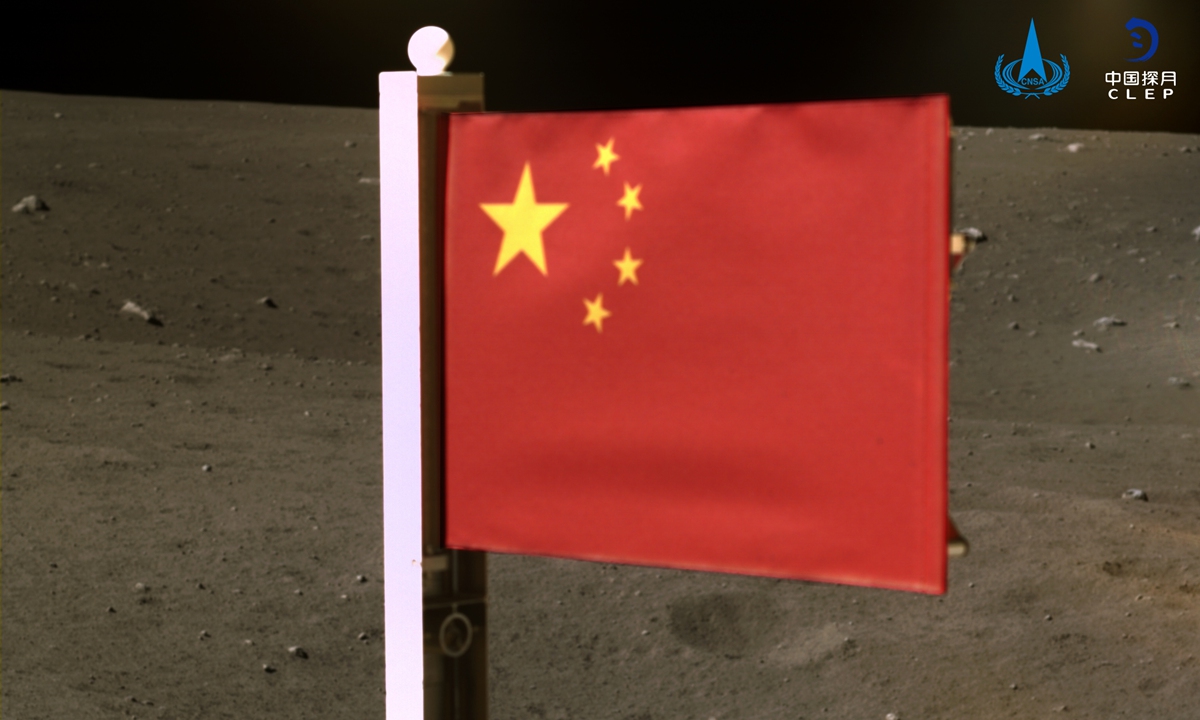 رفع علم الصين على سطح القمر