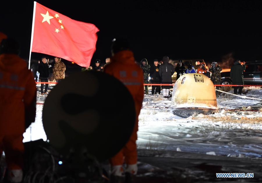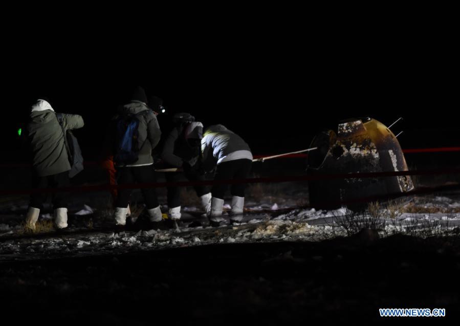 هبطت المركبة الفضائية في محافظة سيتسيوانغ، بمنطقة منغوليا الداخلية ذاتية الحكم شمالي الصين، الساعة 1:59 صباحًا (بتوقيت بكين)، وفقًا لإدارة الفضاء الوطنية الصينية.