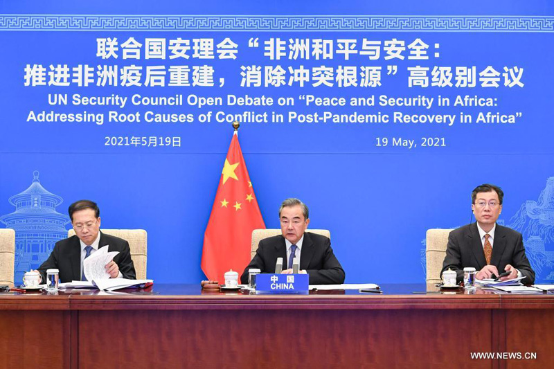 بصفتها رئيسًا لمجلس الأمن الدولي لشهر مايو، عقدت الصين مناقشة مفتوحة لمجلس الأمن اليوم حول “السلام والأمن في إفريقيا: معالجة الأسباب الجذرية للصراع في إطار تحقيق التعافي بعد أزمة الوباء في إفريقيا”.