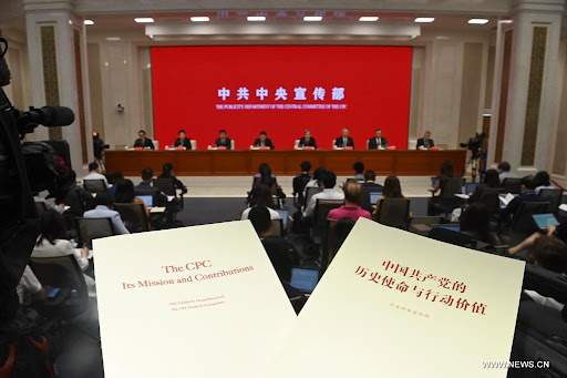 وخلال مؤتمر صحفي عقد اليوم الخميس، قال وانغ شياو هوي نائب رئيس دائرة الدعاية باللجنة المركزية للحزب الشيوعي الصيني، إن الوثيقة تشرح فكر وممارسات وانجازات حوكمة الحزب الشيوعي الصيني وتسلط الضوء على القضية المتعلقة بمن أين يأتي الحزب وأين سيتوجه.