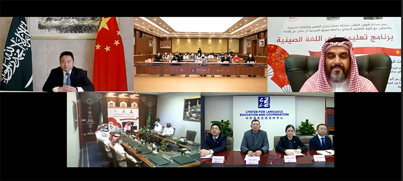 عقد حفل افتتاح المعسكر الشتوي الافتراضي “جسر اللغة الصينية – طريق الحرير المعاصر، الصين الملونة ” لطلاب الجامعات السعوديين في 4 يناير/ كانون الثاني 2022 ، بحضور مدير مركز التبادل الدولي للتعليم اللغوي التابع لوزارة التربية والتعليم الصينية ما جيان في، ووزير مستشار بالسفارة الصينية في السعودية ين لي جون، ونائبة رئيس جامعة مينتسو الصينية سونغ مين، ووكيل جامعة الملك عبدالعزيز بالمملكة العربية السعودية عبدالمنعم الحياني.