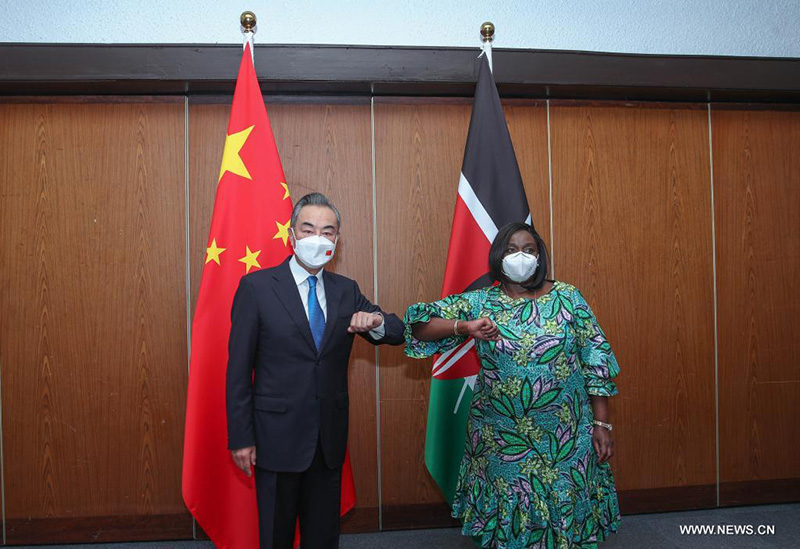 التقى عضو مجلس الدولة ووزير الخارجية الصيني وانغ يي يوم (الخميس) وزيرة الشؤون الخارجية الكينية رايشيل أومامو في مدينة مومباسا الساحلية الكينية.