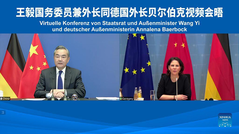 أجرى عضو مجلس الدولة وزير الخارجية الصيني وانغ يي محادثات يوم (الخميس) مع نظيرته الألمانية الجديدة أنالينا بيربوك عبر رابط فيديو، وتعهد الجانبان بتعميق التعاون في مختلف المجالات.