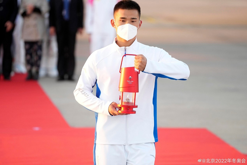 في 18 أكتوبر عام 2021، تم إشعال شعلة لألعاب الأولمبية الشتوية في بكين أمام معبد هيرا في بلدة أولمبيا اليونانية القديمة، وتم تخزينها في فانوس اللهب. ثم تم تسليمها رسميًا من قبل اللجنة الأولمبية اليونانية إلى اللجنة المنظمة للألعاب الأولمبية الشتوية ببكين. وفي وقت مبكر من صباح يوم 20 أكتوبر، هبطت طائرة مستأجرة تابعة لشركة الخطوط الصينية تحمل الشعلة في مطار العاصمة بكين الدولي.