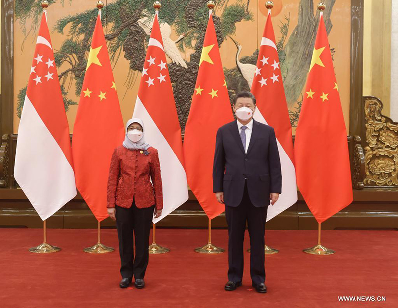 التقى الرئيس الصيني شي جين بينغ رئيسة سنغافورة الزائرة حليمة يعقوب في بكين يوم (الأحد)، حيث دعا إلى تعميق التضافر بين استراتيجيات التنمية لدى الجانبين وتعزيز التنمية السليمة والمطردة للعلاقات الثنائية في فترة ما بعد الجائحة.