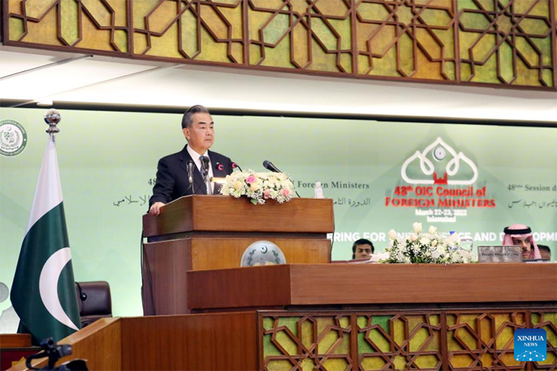 وفي كلمته أمام الدورة الـ48 لمجلس وزراء خارجية منظمة التعاون الإسلامي، قال وانغ إن الصين مستعدة لبناء أربع شراكات تتعلق بالتضامن والتنمية والأمن والحضارة مع الدول الإسلامية، في خضم عالم مليء بالاضطرابات والتحولات.