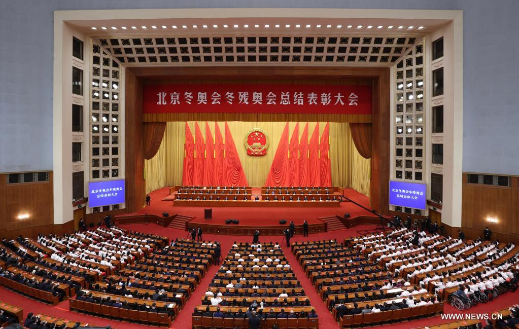 حضر الرئيس الصيني شي جين بينغ تجمعاً في بكين صباح اليوم الجمعة، لتكريم أولئك الذين قدموا مساهمات بارزة في دورة الألعاب الأولمبية الشتوية بكين 2022 ودورة الألعاب الأولمبية الشتوية للمعاقين بكين 2022.