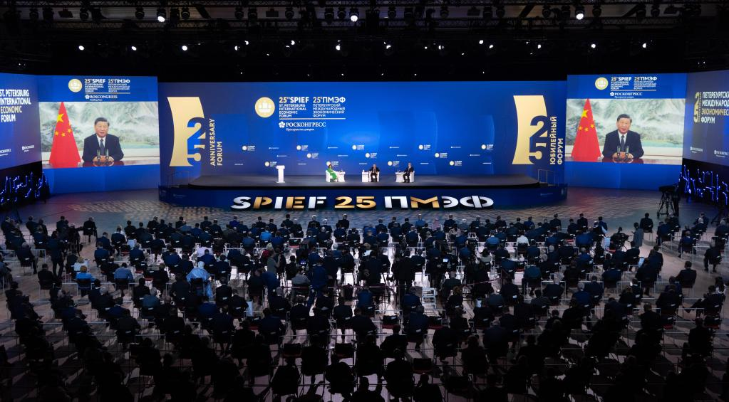 حضر الرئيس الصيني شي جين بينغ، افتراضيا يوم (الجمعة)، الجلسة الكاملة لمنتدى سانت بطرسبرغ الاقتصادي الدولي الخامس والعشرين، وألقى كلمة، بناء على دعوة وجهت إليه.