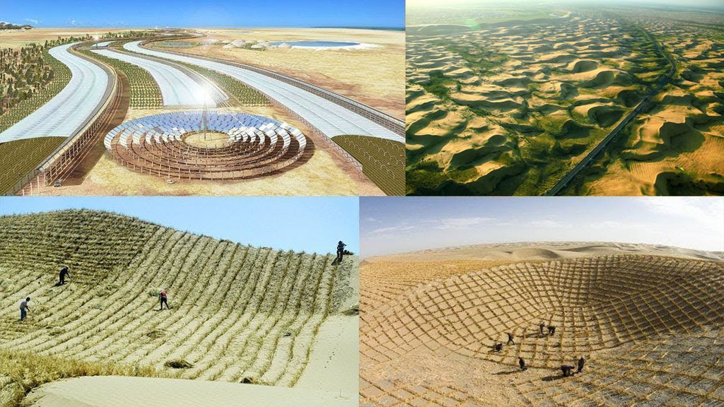 وبتوجيه من الزعيم شي، أخذت الصين على عاتقها في السنوات الأخيرة التنمية الخضراء، وطورت القوانين التي من شأنها حماية البيئة. وشَجّعت شركات الغابات وشركات مكافحة الرمال على الاستثمار في مكافحة التصحّر، وهي تركّز على تطوير الزراعة الحديثة وتربية الماشية والطاقة الخضراء الجديدة باستغلال الصحراء الشاسعة، والطاقة الشمسية الوفيرة فيها، وفي الوقت نفسه، توظّف السكان المحيطين بالمنطقة المستهدفة لتحقيق غاية واحدة تدمج بين الإنماء الاقتصادي وصون البيئة.