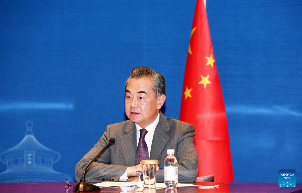 التقى عضو مجلس الدولة وزير الخارجية الصيني وانغ يي يوم (الاثنين) عبر الفيديو مع مبعوثين دبلوماسيين من دول نامية في آسيا وأفريقيا لدى مقر الأمم المتحدة في جنيف.