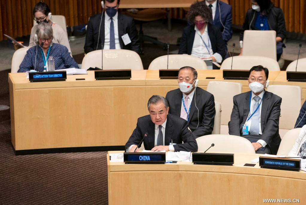 حضر وانغ يي، عضو مجلس الدولة وزير الخارجية الصيني الممثل الخاص للرئيس الصيني شي جين بينغ، (الأربعاء) اجتماعا رفيع المستوى بشأن تغير المناخ في مقر الأمم المتحدة هنا، حيث ألقى كلمة.