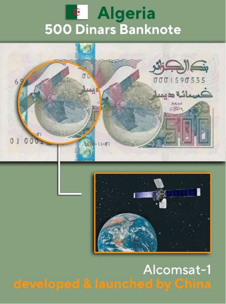 ورقة نقدية من فئة 500 دينار جزائري ـــــــــــــــــــ القمر الاصطناعي الجزائري للاتصالات ألكومسات-1