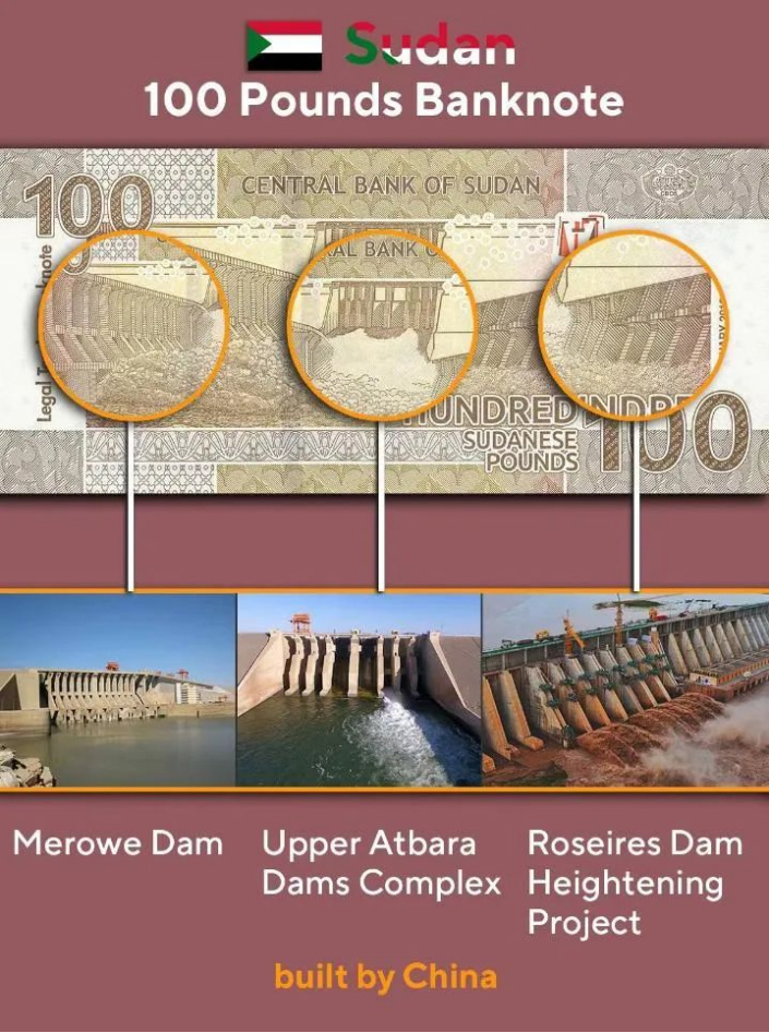 ورقة نقدية من فئة 100 جنيه سوداني ـــــــــــــــــــ سد مِرْوِي وسد أعالي عَطْبَرَة وسد الروصيرص
