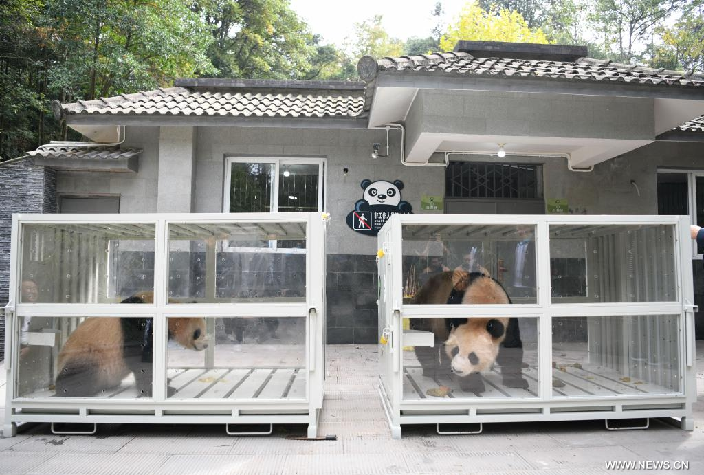 ومنذ أكثر من شهر، تم إجراء فحوصات جسدية على حيواني الباندا ووضعهما في الحجر الصحي. وقال المركز إنهما بصحة جيدة.