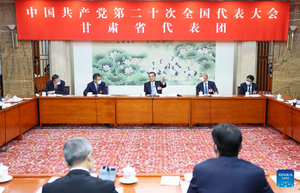 شارك لي كه تشيانغ، يوم الاثنين الماضي، في مناقشة جماعية مع مندوبين من مقاطعة قانسو بشمال غربي الصين يحضرون المؤتمر الوطني الـ20 للحزب الشيوعي الصيني.