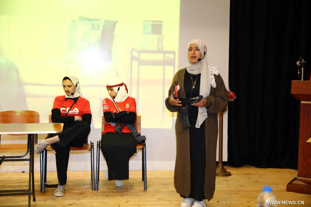 في مسرح مزين بفوانيس حمراء على الطراز الصيني، أظهر طلاب مصريون طلاقة أثناء الغناء والرقص والتمثيل باللغة الصينية على خشبة المسرح خلال مسابقة لأداء الاسكتش الصيني، أقيمت في معهد كونفوشيوس بجامعة القاهرة.