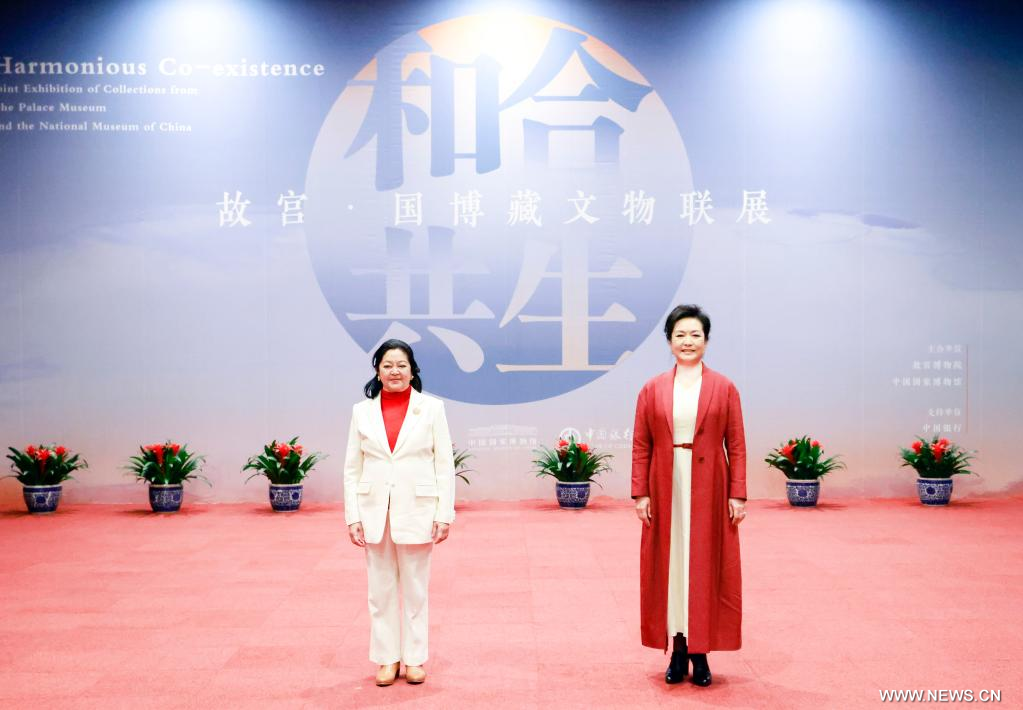 زارت بنغ لي يوان، عقيلة الرئيس الصيني شي جين بينغ، يوم (الأربعاء) المتحف الوطني الصيني مع لويز أرانيتا-ماركوس، عقيلة رئيس الفلبين فرديناند روموالديز ماركوس جونيور، التي جاءت مع ماركوس في زيارة الدولة التي يقوم بها إلى الصين.