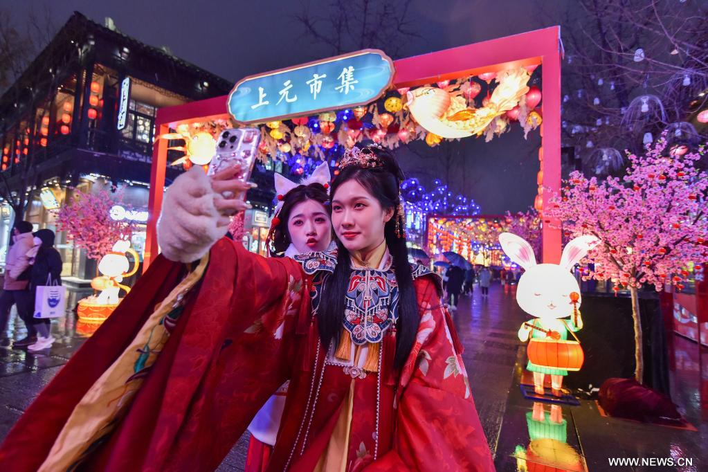 في الصور الملتقطة يوم 14 يناير 2023، زوار في مهرجان الفوانيس في منطقة معبد كونفوشيوس ذات المناظر الخلابة في مدينة نانجينغ حاضرة مقاطعة جيانغسو في شرقي الصين.