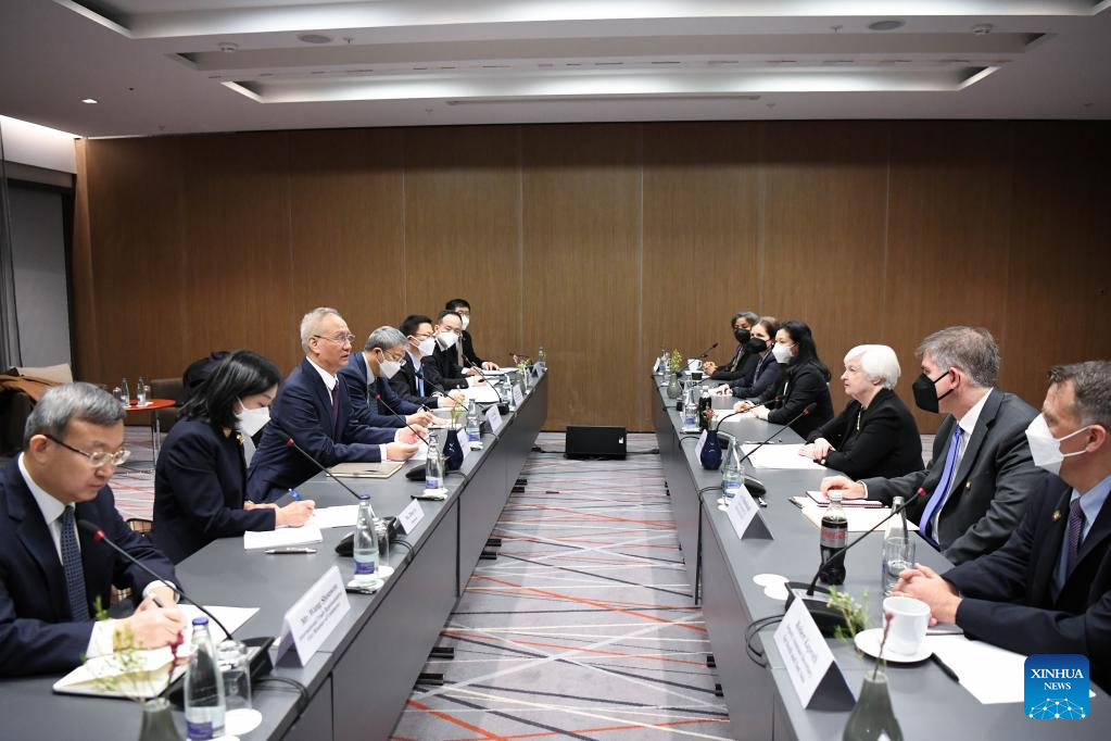 عقد نائب رئيس مجلس الدولة الصيني ليو خه، وهو أيضا رئيس الجانب الصيني في الحوار الاقتصادي الشامل بين الصين والولايات المتحدة، محادثات مع وزيرة الخزانة الأمريكية جانيت يلين هنا يوم (الأربعاء).