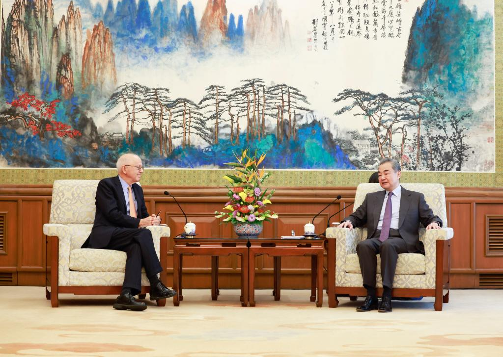 التقى وانغ يي، مدير مكتب لجنة الشؤون الخارجية للجنة المركزية للحزب الشيوعي الصيني، ستيفن أورلينز، رئيس اللجنة الوطنية للعلاقات الأمريكية-الصينية، في بكين اليوم (الجمعة).
