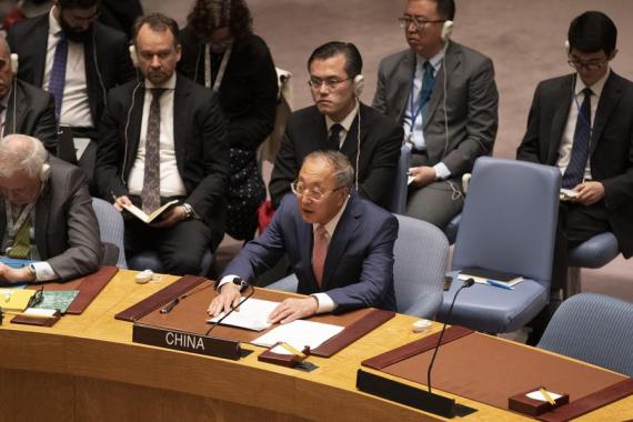 وفي نقاش مفتوح بشأن الشرق الأوسط، أكد تشانغ أمام مجلس الأمن أن هناك حاجة لمعارضة العنف والتحريض، والسعي لتحقيق أمن مشترك.