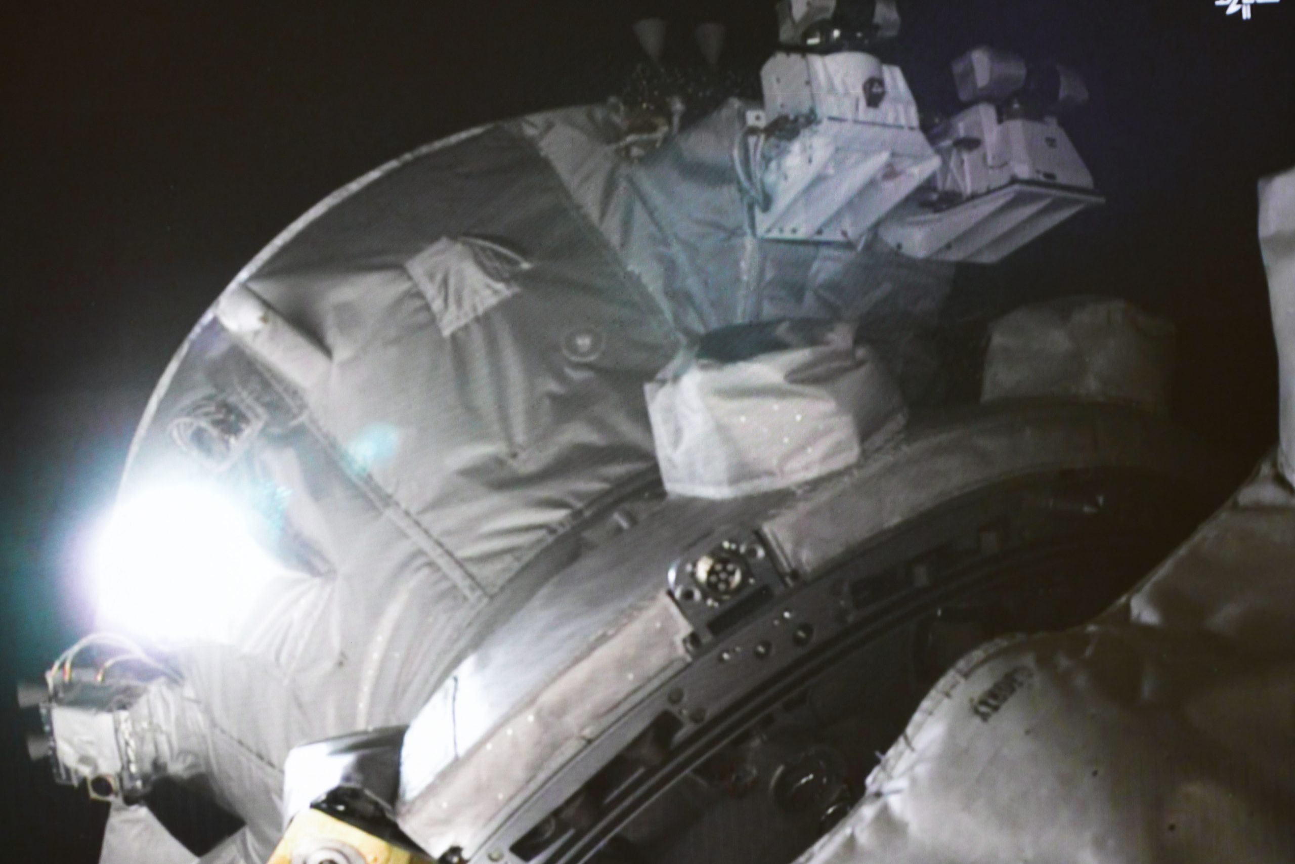 في صورة الشاشة الملتقطة داخل مركز بكين للتحكم في الطيران الفضائي، مركبة الشحن الفضائية الصينية “تيانتشو-6” تقترب من مجموعة المحطة الفضائية “تيانقونغ” قبل الالتحام. قالت وكالة الفضاء المأهول الصينية إن سفينة الشحن “تيانتشو-6” أكملت إعداد حالتها والتحمت مع المحطة الفضائية “تيانقونغ” في المدار. وفي الساعة 5:16 صباحا (بتوقيت بكين)، التحمت “تيانتشو-6” بمنفذ الالتحام الخلفي للوحدة الأساسية “تيانخه”، وفقا لما ذكرت الوكالة. وسيقوم رواد فضاء المهمة “شنتشو-15” على متن المحطة الفضائية بالدخول إلى مركبة الشحن ونقل الحمولات كما هو مقرر.