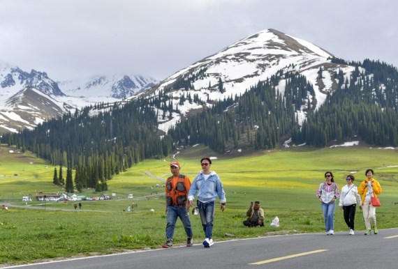 في الصور الملتقطة، زوار يستمتعون بالمناظر الطبيعية في مرعى نارات في محافظة شينيوان بمنطقة شينجيانغ الويغورية ذاتية الحكم بشمال غربي الصين. وشهد المرعى ذو المناظر الطبيعية الخلابة أكثر من 87 ألف رحلة سياحية في مايو الجاري.