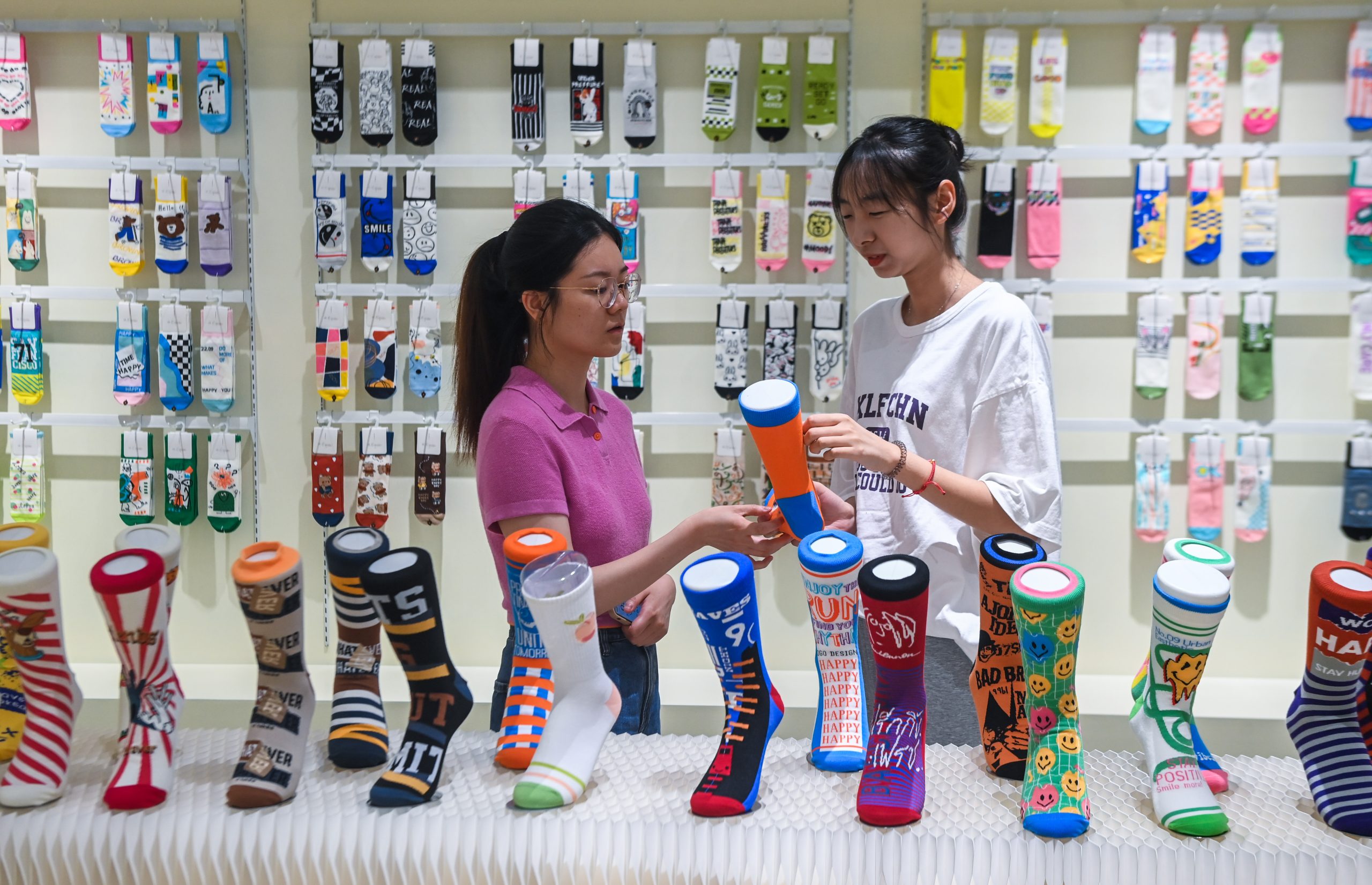 أكبر قاعدة لإنتاج الجوارب في العالم بمقاطعة تشجيانغ في شرقي الصين