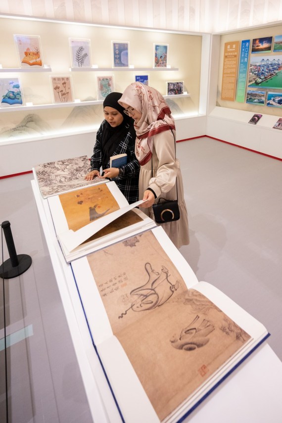 بمصاحبة نغمات صادرة عن آلة قوتشين الموسيقية، عُرضت صورة للوحة الكلاسيكية التي تحمل اسم “آلاف الأميال من الأنهار والجبال” على أغلفة الكتب، وهي مجموعة شاملة من اللوحات الصينية القديمة التي ظهرت في معرض كوالالمبور الدولي للكتاب الذي حلت فيه الصين ضيف شرف. وقد أتاحت هذه المجموعة، التي عُرضت بالضوء والظل، الفرصة للجماهير للانغماس في جمال فن الرسم الصيني القديم.