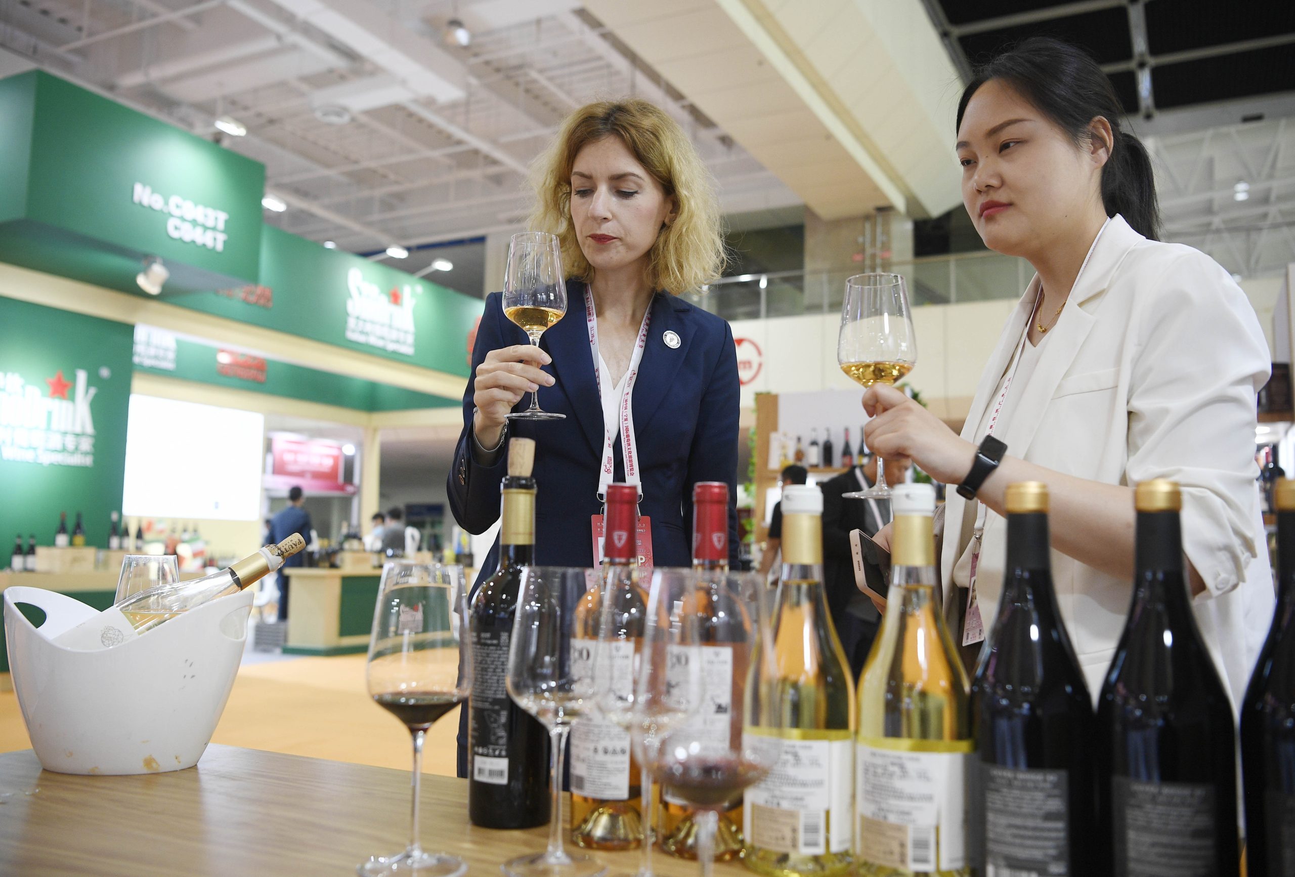 في الصورة الملتقطة، أناس يتذوقون النبيذ خلال مؤتمر ومعرض دوليين حول النبيذ في ينتشوان بمنطقة نينغشيا ذاتية الحكم لقومية هوي بشمال غربي الصين.