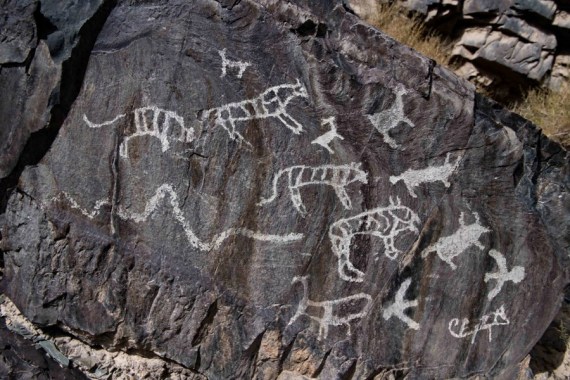 ومن بينها، تصور اللوحات الصخرية في جبل هيشان مشاهد حياتية لمجموعة تشيانغ الإثنية القديمة، مثل الصيد وركوب الخيل والرماية، في ممر خهشي، وهو جزء من طريق الحرير القديم في شمال غربي الصين.