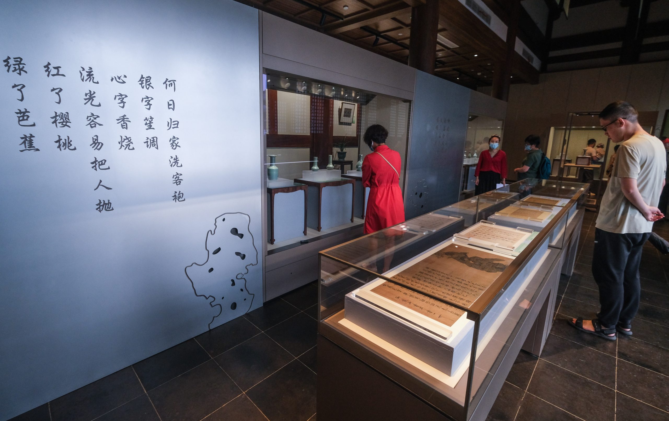 في الصورة الملتقطة، سياح يزورون متحف قصر دهشو لعهد أسرة سونغ الجنوبية في مدينة هانغتشو بمقاطعة تشجيانغ في شرقي الصين. وتعد مدينة هانغتشو غنية بالتراث الثقافي والمناظر الطبيعية الساحرة، الأمر الذي يجعلها مقصداً لا بد من زيارته للسياح.