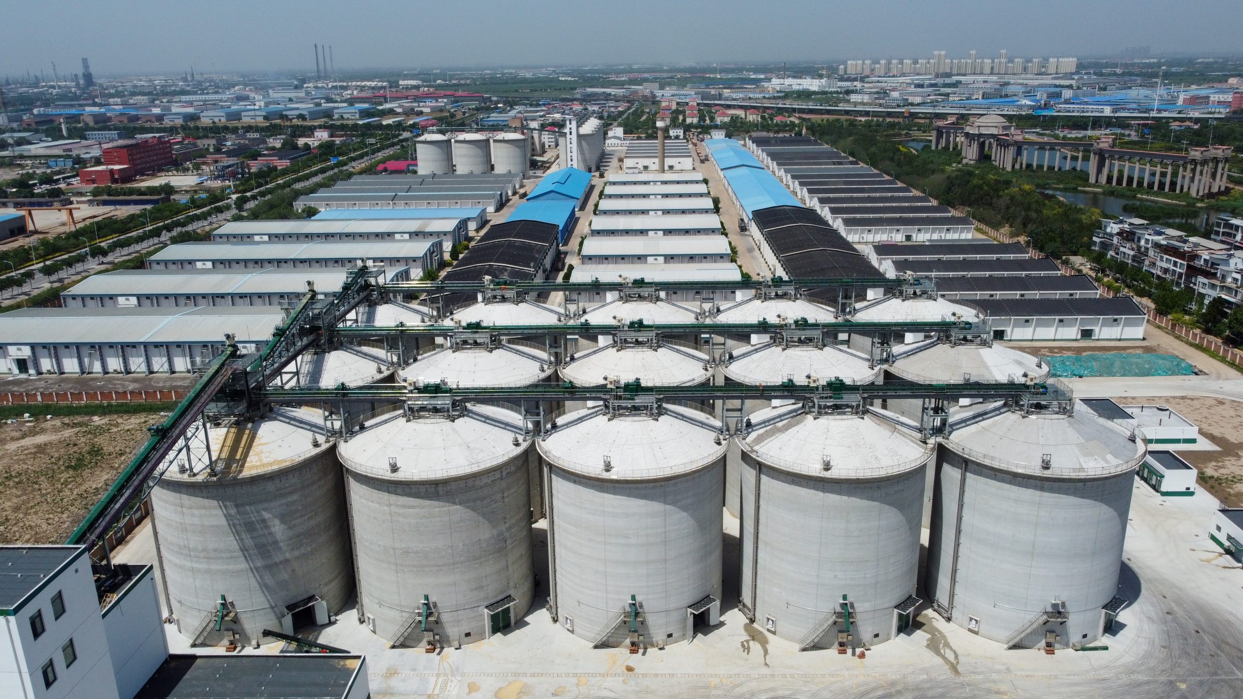 في الصورة الجوية الملتقطة، مستودعات في فرع داقانغ التابع لشركة “مستودع تيانجين دونغلي المباشر المركزي لاحتياطي الحبوب” المحدودة في بلدية تيانجين شمالي الصين. تم وضع 23 مستودعا جديدا موضع الاستخدام في فرع داقانغ التابع للشركة، ما يضيف سعة تخزين إجمالية تبلغ حوالي 200 ألف طن إلى مستودع احتياطي الحبوب الرئيسي في تيانجين.