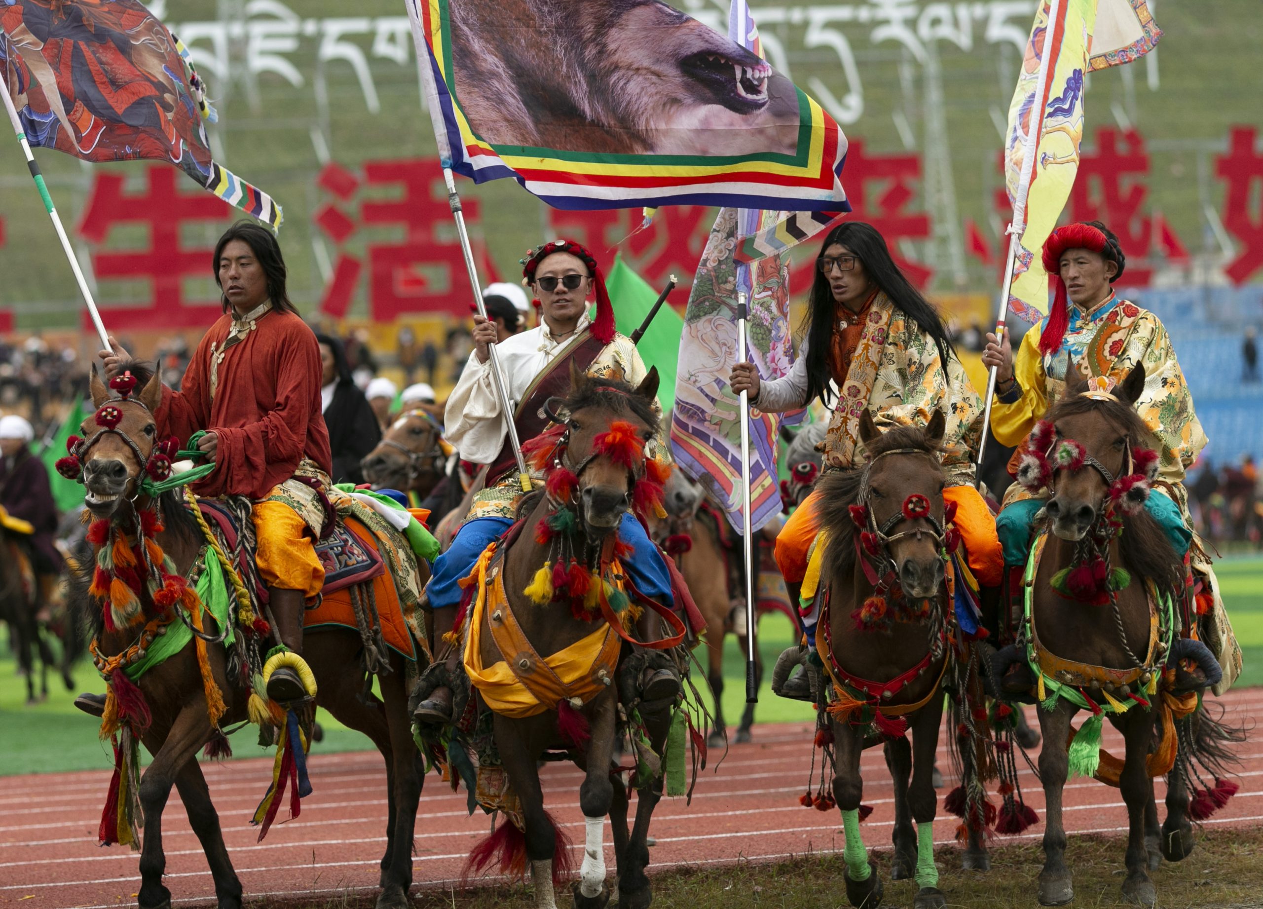 في الصورة الملتقطة فرسان يشاركون في مهرجان لسباق الخيل في ولاية يويشو التبتية ذاتية الحكم في مقاطعة تشينغهاي شمال غربي الصين. انطلق الحدث بتقديم عروض رقص وموسيقى وعروض لسباق الخيل وعروض فنية في الهواء الطلق.