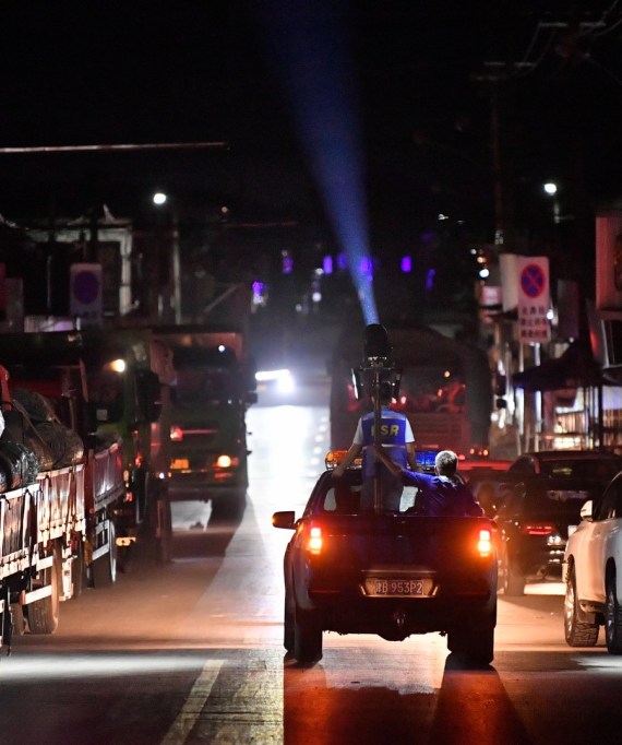 في الصور الملتقطة رجال إنقاذ يقومون بدوريات في قرى بحي جينغهاي في بلدية تيانجين شمالي الصين. وشهد قطاع تايتو من نهر داتشينغخه ارتفاعا مستمرا في منسوب المياه ليصل إلى حوالي ستة أمتار. ويقوم رجال الإنقاذ بدوريات ليلا ونهارا على القرى وضفاف الأنهار استعداداً لمواجهة أي طارئ.