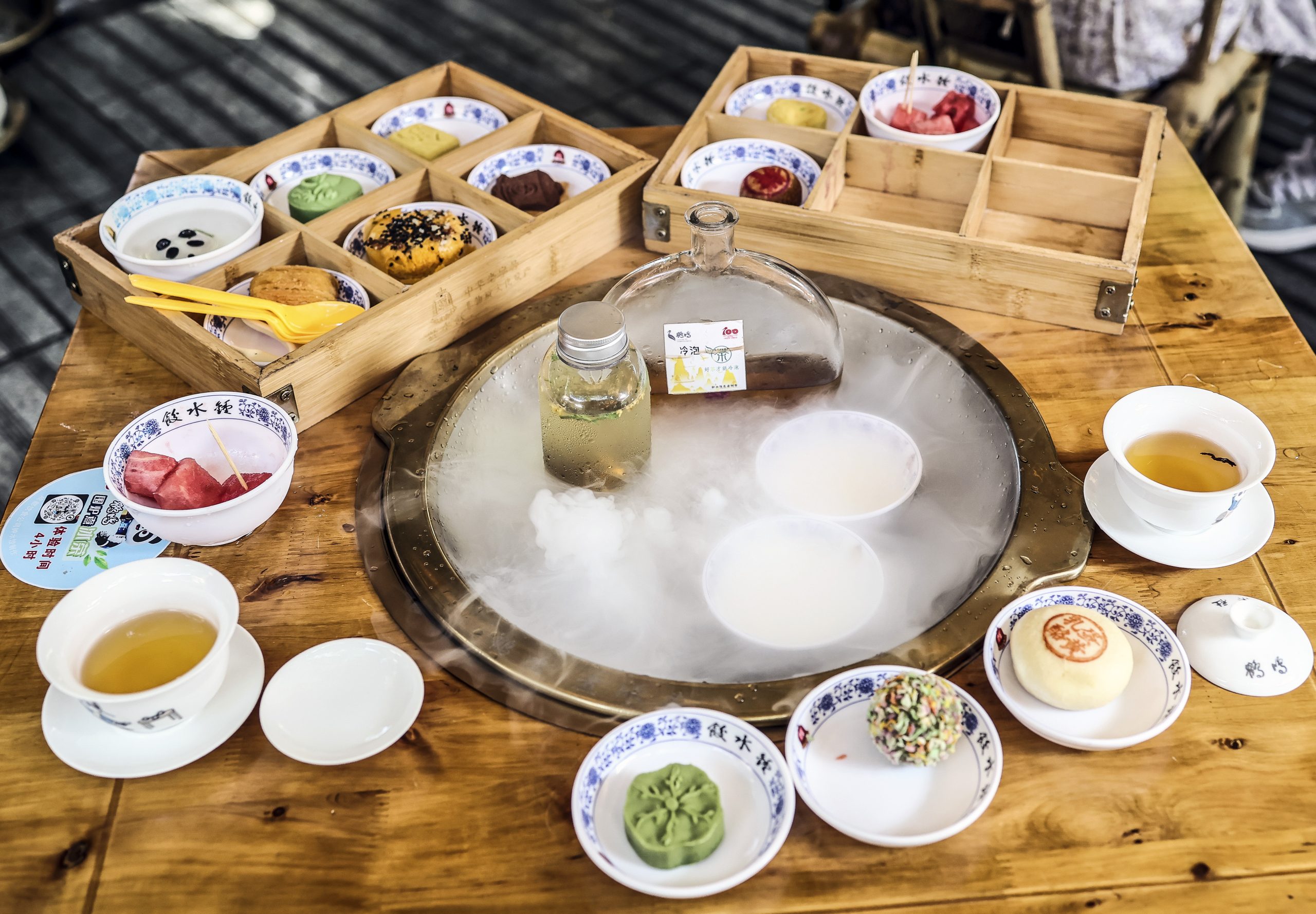 في الصورة الملتقطة وجبة يجري تقديمها لتذوق الشاي في بيت خهمينغ للشاي، في مدينة تشنغدو بمقاطعة سيتشوان جنوب غربي الصين. يمتد تاريخ بيت خهمينغ للشاي، الذي تم بناؤه لأول مرة في عام 1923، لـ100 عام وهو أحد أقدم بيوت الشاي في تشنغدو.