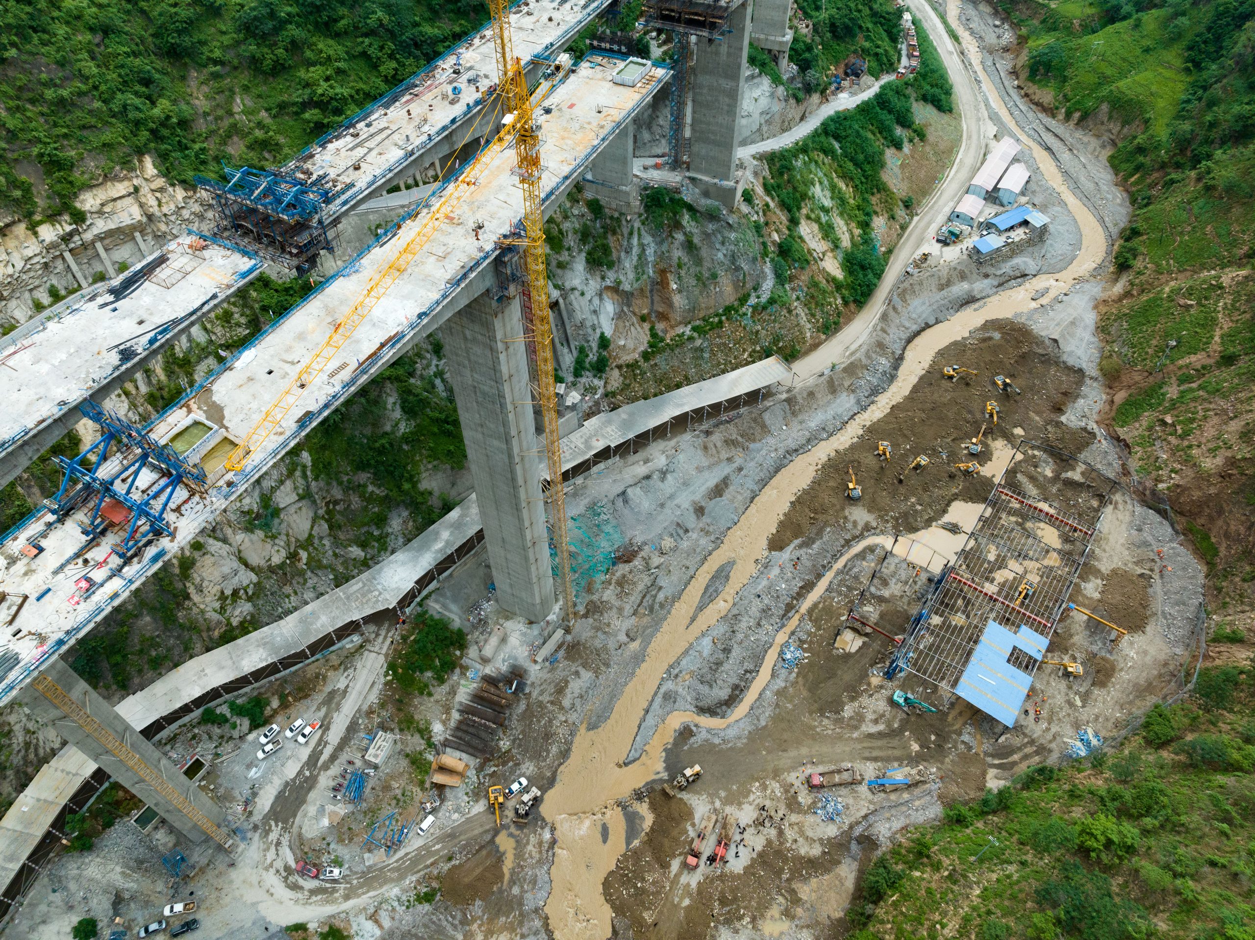 في الصورة الملتقطة جوا مشهد لأعمال الإنقاذ في المنازل المؤقتة للعمال في موقع معالجة قضبان الصلب لمجموعة “شوداو” التي كانت تقوم بمشروع بناء طريق سريع عند الروافد السفلى لنهر لوقاولين في محافظة جينيانغ في ولاية ليانغشان الذاتية الحكم لقومية يي في مقاطعة سيتشوان بجنوب غربي الصين.