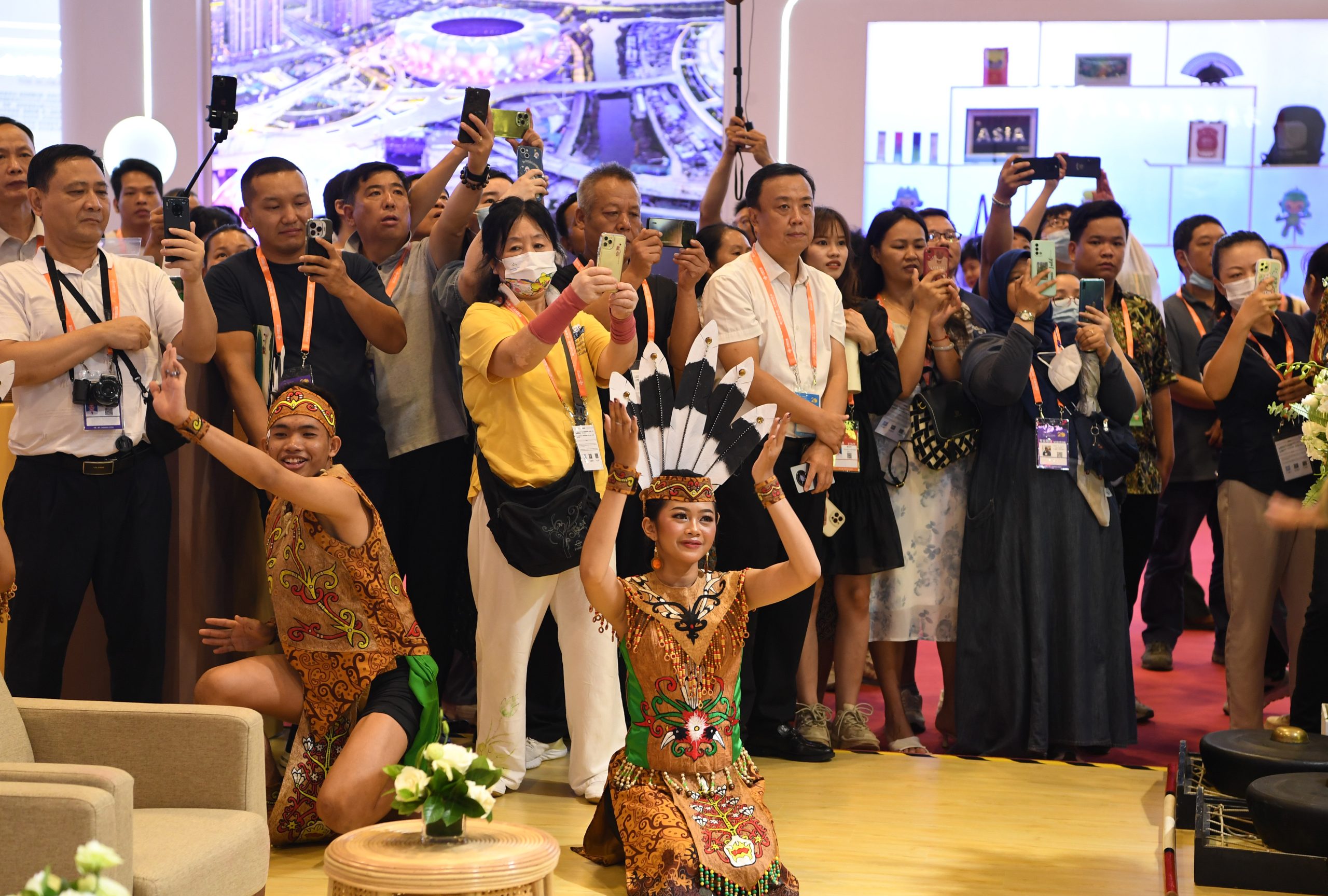 في الصورة الملتقطة فنانون إندونيسيون يعرضون رقصة شعبية في معرض الصين-الآسيان الـ20 المقام بالمركز الدولي للمؤتمرات والمعارض في مدينة ناننينغ، حاضرة منطقة قوانغشي ذاتية الحكم لقومية تشوانغ بجنوبي الصين.