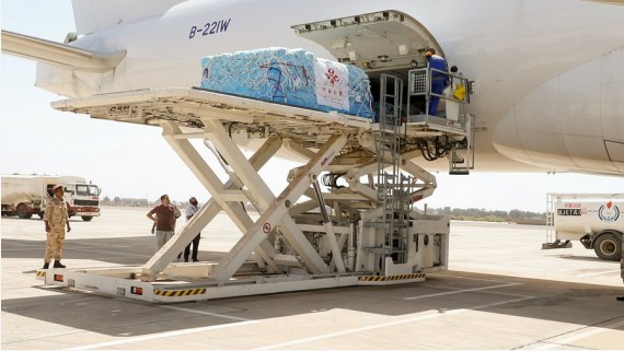 وتحمل طائرة الشحن الصينية نحو 90 طنا من المساعدات الإنسانية الطارئة لليبيا بقيمة تقدر بنحو 30 مليون يوان صيني.
