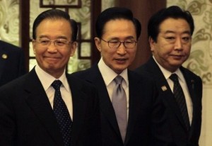 اتفق رئيس مجلس الدولة الصيني وين جيباو ورئيس الحكومة اليابانية يوشيهيكو نودا ورئيس كوريا الجنوبية لي ميونغ باك في لقائهم في بكين اليوم 13 مايو/ايار على بدء مفاوضات بشأن التجارة الحرة بين بلدانهم.