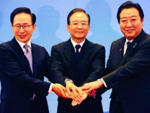 وقال ون للصحفيين، بعد محادثات في بكين مع رئيس الوزراء الياباني يوشيهيكو نودا والرئيس الكوري الجنوبي لي ميونج باك، “في رد على انتعاش اقتصادي بطيء وزيادة الحماية التجارية في أنحاء العالم تسعى دول كثيرة لتعزيز التكامل الاقتصادي الإقليمي لزيادة نصيبها في السوق وزيادة قدرتها على المنافسة”، مضيفاً “شمال شرق آسيا اكثر المناطق النابضة بالنشاط الاقتصادي في العالم. “إبرام اتفاق تجارة حرة سيطلق القوة الاقتصادية لمنطقتنا ويعطي تعزيزا قويا للتكامل الاقتصادي في شرق آسيا”. وتعتزم الحكومات الثلاث مواجهة المخاوف الاقتصادية وفتور الطلب من الاقتصادات المتقدمة من خلال بدء محادثات رسمية هذا العام من أجل إبرام اتفاقيتها الخاصة للتجارة الحرة وهي فكرة قيد البحث منذ عشر سنوات.