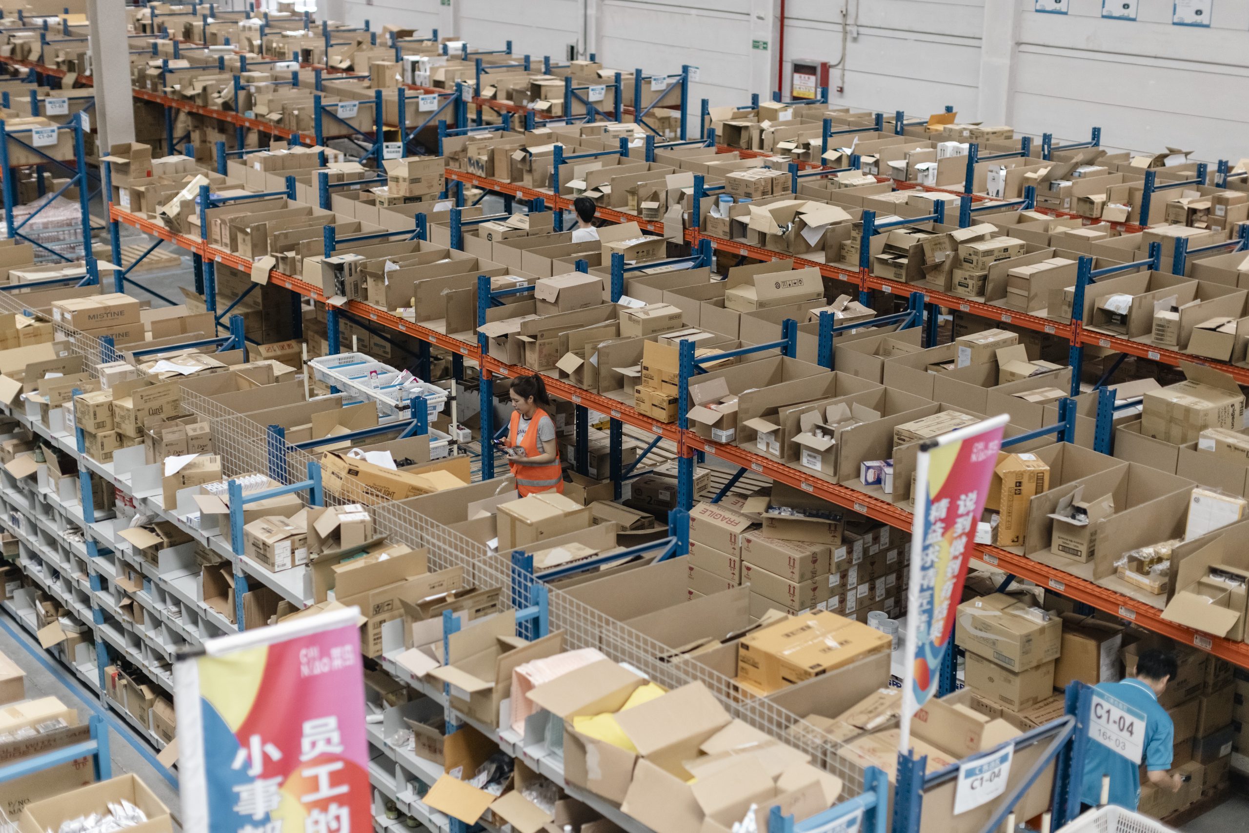 في الصورة الملتقطة موظفة تعمل في مستودع “ييوو تساينياو” للتخزين الجمركي المؤقت في مدينة ييوو بمقاطعة تشجيانغ في شرقي الصين.