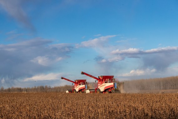 في الصور الملتقطة حصادتان تحصدان فول الصويا في قرية ليويهوا بمحافظة قاننان في مقاطعة هيلونغجيانغ بشمال شرقي الصين. وفي فصل الخريف، تدخل محافظة قاننان موسم الحصاد، وتشهد التربة السوداء الشاسعة والخصبة حصاداً وافراً وازدحاماً.