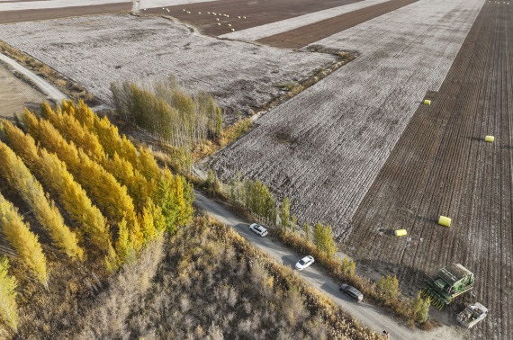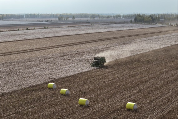في الصور الملتقطة آلات تعمل على جمع القطن في حقل بمدينة شاوان في منطقة شينجيانغ الويغورية ذاتية الحكم في شمال غربي الصين. ودخلت شينجيانغ، أكبر منطقة لزراعة القطن في الصين، موسم حصاد القطن لهذا العام.