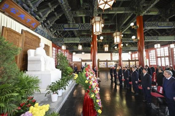 ووضع مسؤولون كبار من المجلس الوطني للمؤتمر الاستشاري السياسي للشعب الصيني، واللجنة المركزية للجنة الثورية لحزب الكومينتانغ الصيني، ودائرة عمل الجبهة المتحدة باللجنة المركزية للحزب الشيوعي الصيني، وحكومة بلدية بكين، الزهور أمام تمثال الدكتور صون.